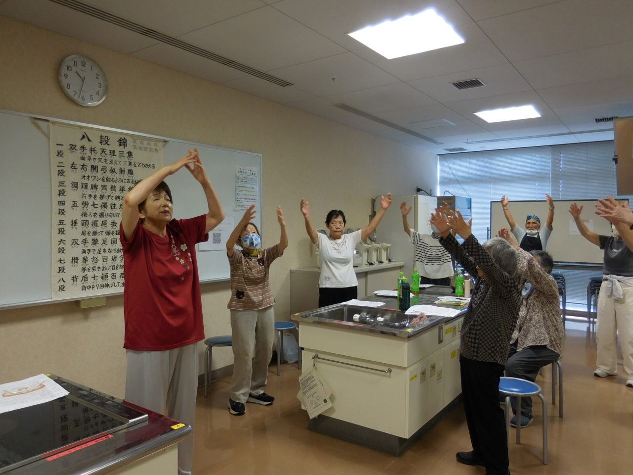 「高齢者等の居場所づくり」第3弾として、2025年9月26日(金)午前10時~12時、徳島市沖浜のふれあい健康館において25名の参加者で「八段錦とパッククッキング」を開催しました。