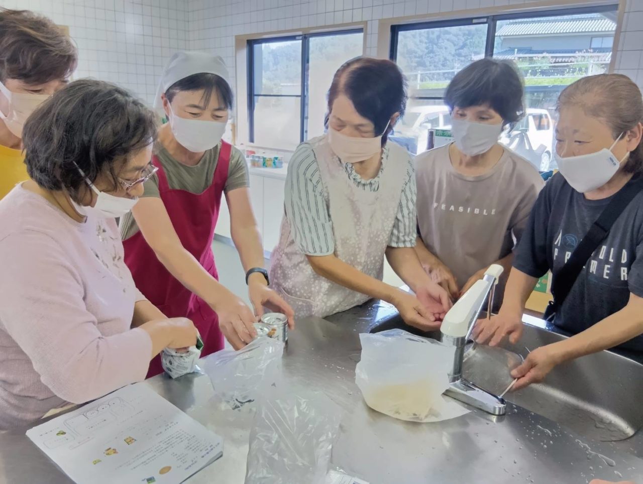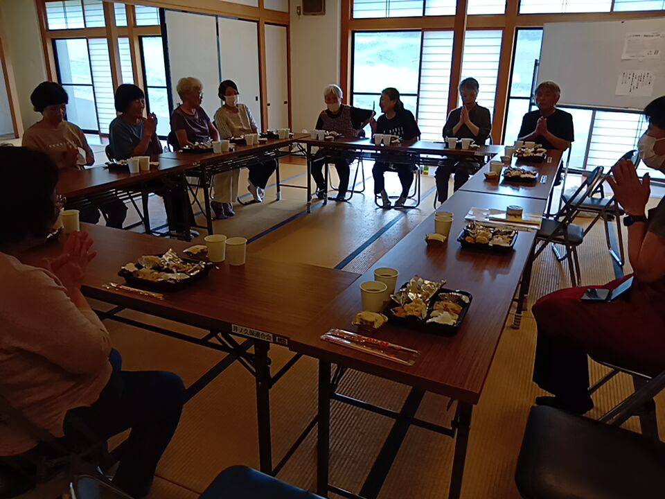 山本ADの開催挨拶に続いて、「演歌で体操(北国の春とズンドコ節)」「認知症予防体操」「百歳体操」を山本AD指導の下、行いました。川原ADの調理実習は「防災」をテーマに備蓄食品とポリ袋を使ったパッククッキングを行いました。今回は昏石ADに仲間を募っていただきました。参加者から「開催のチラシを見て、あっ!これいいね。」「備蓄の大切さを身をもって学習できた。」「いざという時のためにどんどん身に付けたい。」などの沢山の声が届きました。「人とのかかわり・助け合い・つながりが災害を乗り越えられる鍵である。」「責任ある立場になれば、人はみな力を発揮できる。」「有意義な時間を過ごせたと皆さん満足した様子でした。」との報告が昏石ADからありました。